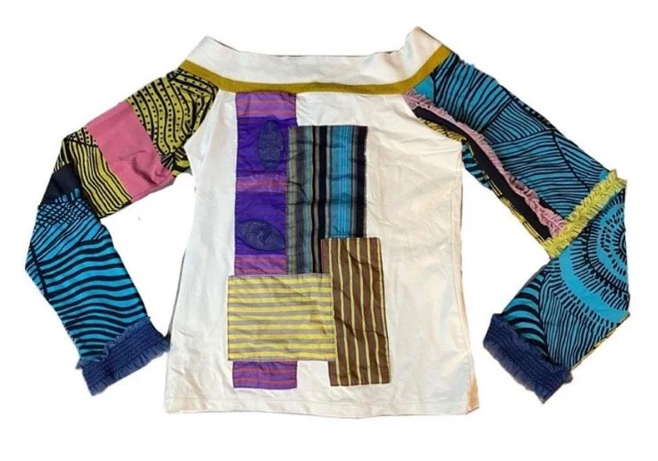 My ‘Save the Queen’ thrifted find on Depop: one of funkiest pieces in my wardrobe. The graphics are irresistible: incongruent patterns complement each other on a white background, as if they were someone’s sketches on a canvas. A top off the shoulder that gives me the opportunity to embrace a more daring side, with a fabric that doesn’t disappoint.