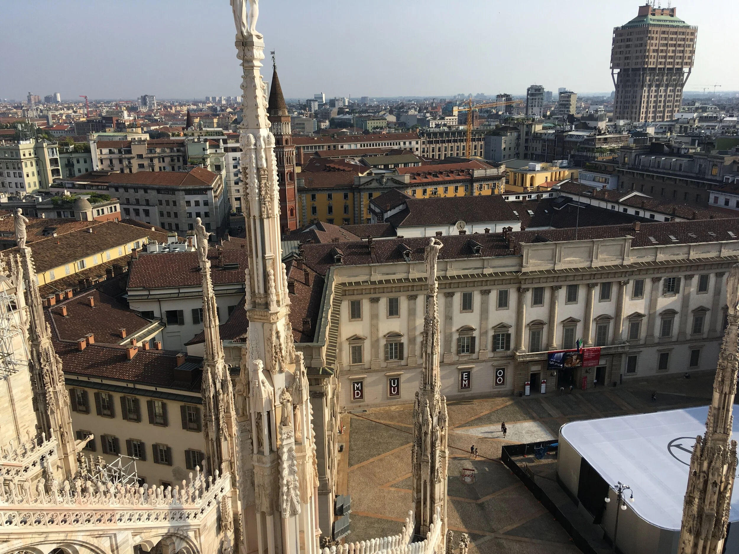 View of Milan from the roof of the Duomo (with Torre Velasca in the distance). Credit: Alex Fice