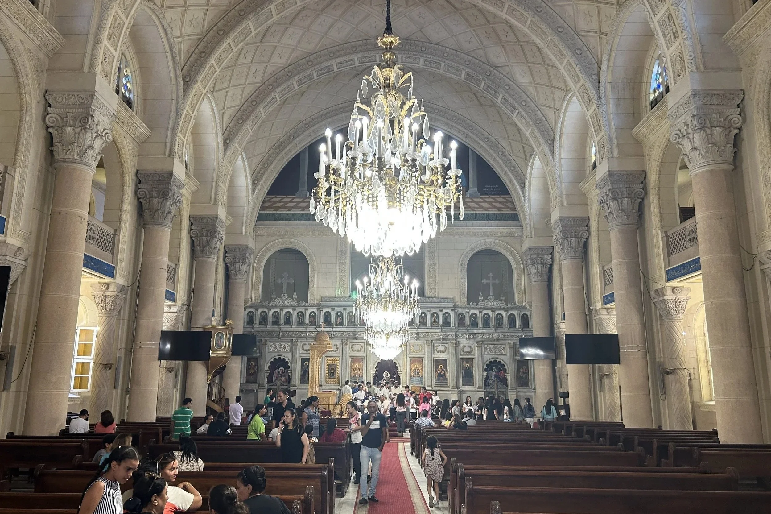 Perhaps the most remarkable thing about St Mark’s Cathedral is that it is not a piece of history, rather it is a piece of the present. Whilst at the ruins of ancient temples in Luxor and Aswan, I would close my eyes and imagine what these places must have been like in their heyday millennia ago, St Mark’s requires no imagination. On our visit, we saw children playing football outside, a small school awards ceremony taking place in a corner of the vast main hall, priests stepping out of cars to greet families; the loud noise of life and community everywhere you turn. The Cathedral demonstrates the beauty of the everyday: where, for me, this was an extraordinary place, for Alexandria’s many thousands of Copts, this is simply their weekly church and local community.