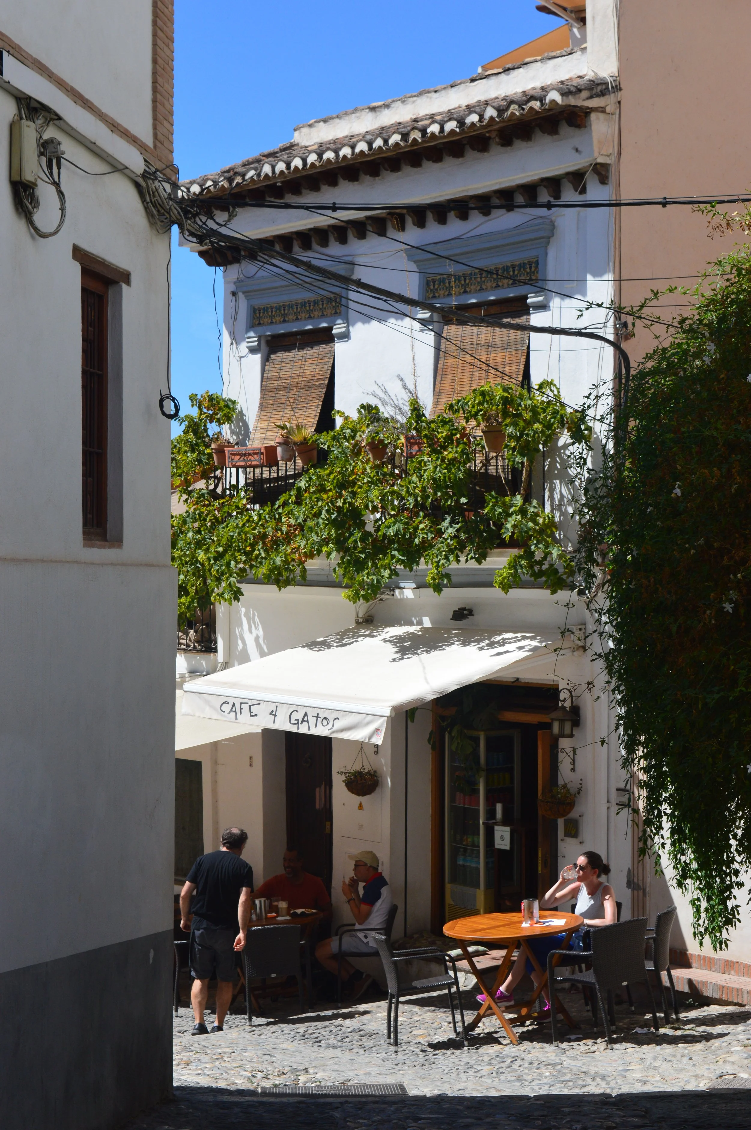 Having slept off the festivities, I packed my things and figured out what to do with my morning before I got my train to Córdoba. I wandered up to the mirador San Nicolas, completely by chance, which turned out to be one of my favourite memories of the trip. The mirador faces the Alhambra at the same height, giving this gorgeous panoramic view of the castle. At around midday it was fairly quiet, apart from a guitarist perched on a ledge playing Bamboleo. A tap on the shoulder draws my attention away from the guitarist to none other than a slightly out of breath Martín. He also was heading off that day, and had decided to do a route through the Albayzin and see all of the miradores, randomly spotting me from a distance. We chat again for a while to the sound of flamenco guitar, we hug, and he tells me to drop him a message if I’m ever in Argentina. I have a quick lunch at the gorgeous café cuatro gatos, a cappuccino with the timeless pan con tomate (crispy slices of baguette with olive oil, garlic and tomatoes – food of the gods) then wander back to the train station. Onwards and upwards.