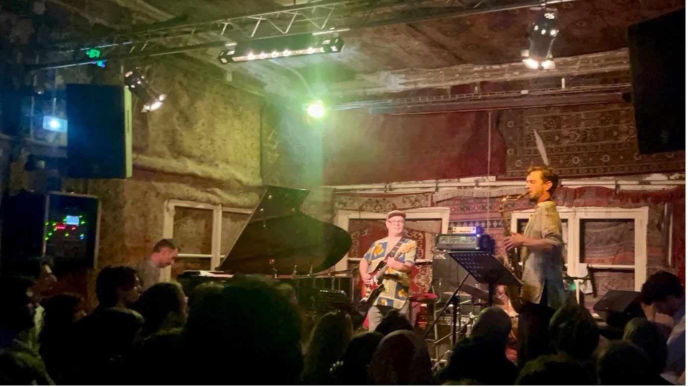 Thursday 8th of May, La Gare Le Gore - Jazz is in full swing, bodies are moving in reverence to the music, the room is sticky and musicians are performing on the stage. The group chops and changes: trumpets, trombones, bass guitar, sax, vocals, electric guitar, keys and drums. Drums are the heartbeat of the performance, driving every note, leading every solo, bringing the audience to the dance. Cymbal, hi-hat, snare drum, it all comes back to the pounding of the bass - that is what controls the rhythm, that is what keeps us moving forward.